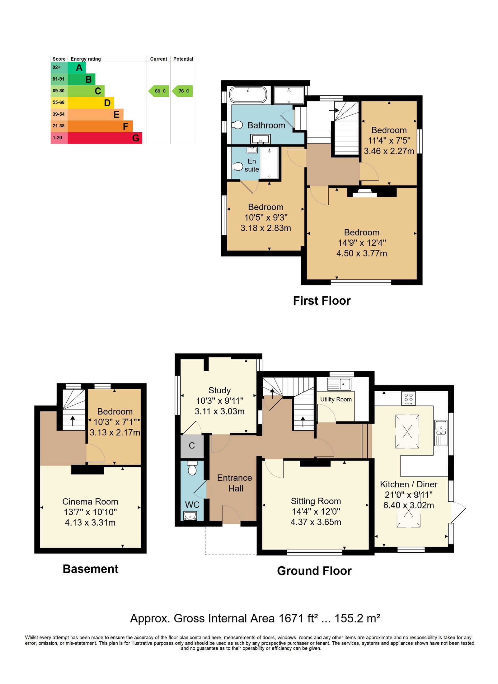 Entrance Hall - Downstairs WC - Study - Sitting Room - Utility Room - Kitchen/Dining Room - Cinema Room - Four Bedrooms - En Suite Shower Room - Family Bathroom - Off Road Parking - Landscaped Garden