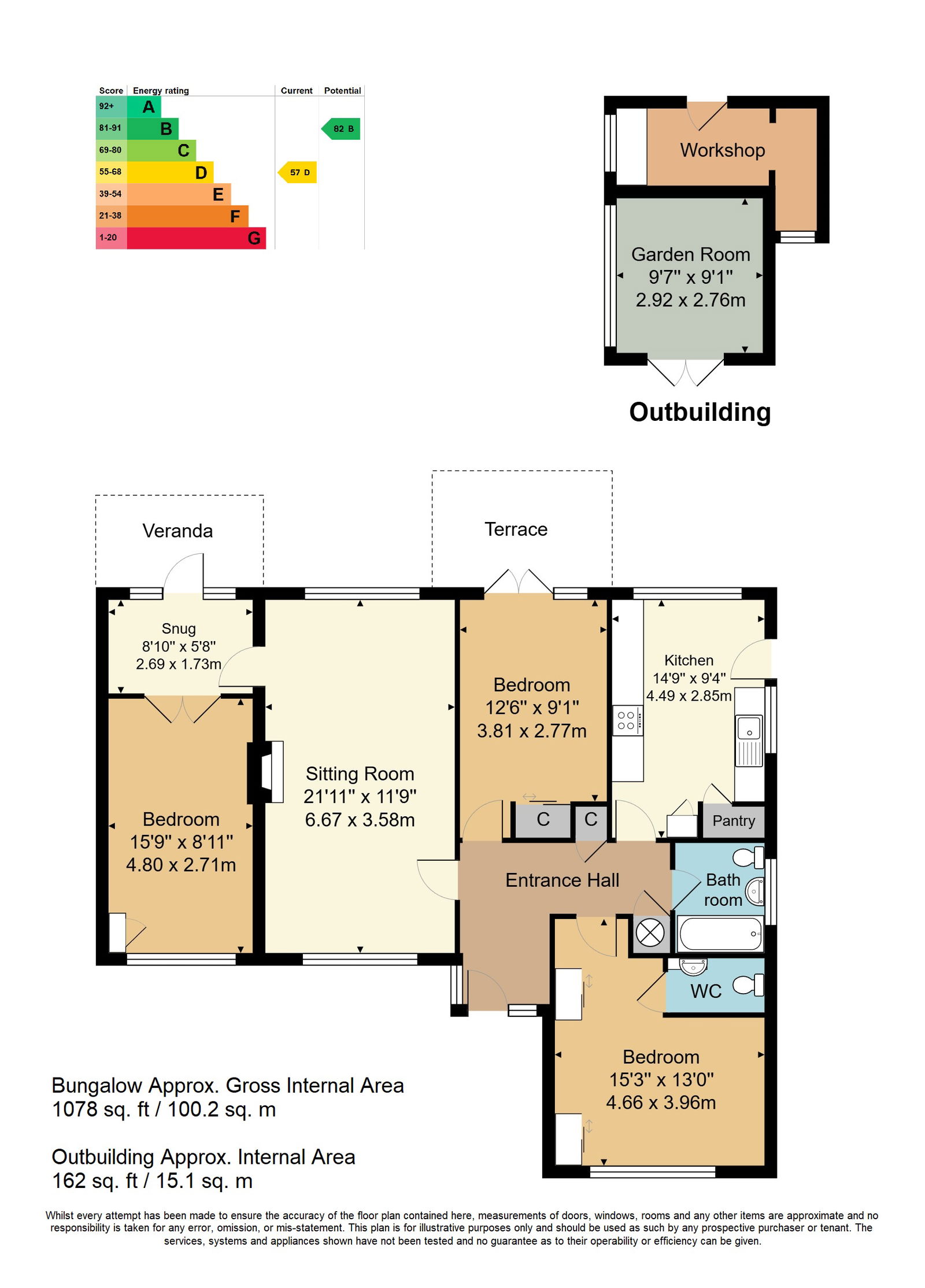 Entrance Hall - Sitting Room - Snug - Kitchen - Master Bedroom With Ensuite Washroom - Bathroom - Two Further Bedrooms - Good Size Rear Garden - Garden Room & Workshop - Driveway