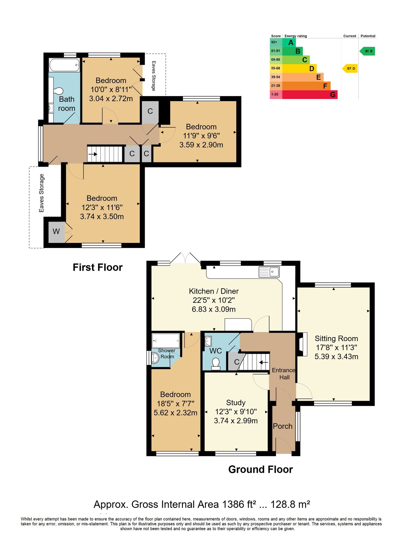 Enclosed Porch - Entrance Hall - Downstairs Cloakroom - Sitting Room - Study/Family Room - Kitchen/Diner - Downstairs Bedroom With Ensuite Shower - First Floor Landing - Three Further Bedrooms - Family Bathroom - Own Driveway - Lawned Front Garden - Large Mature Rear Garden