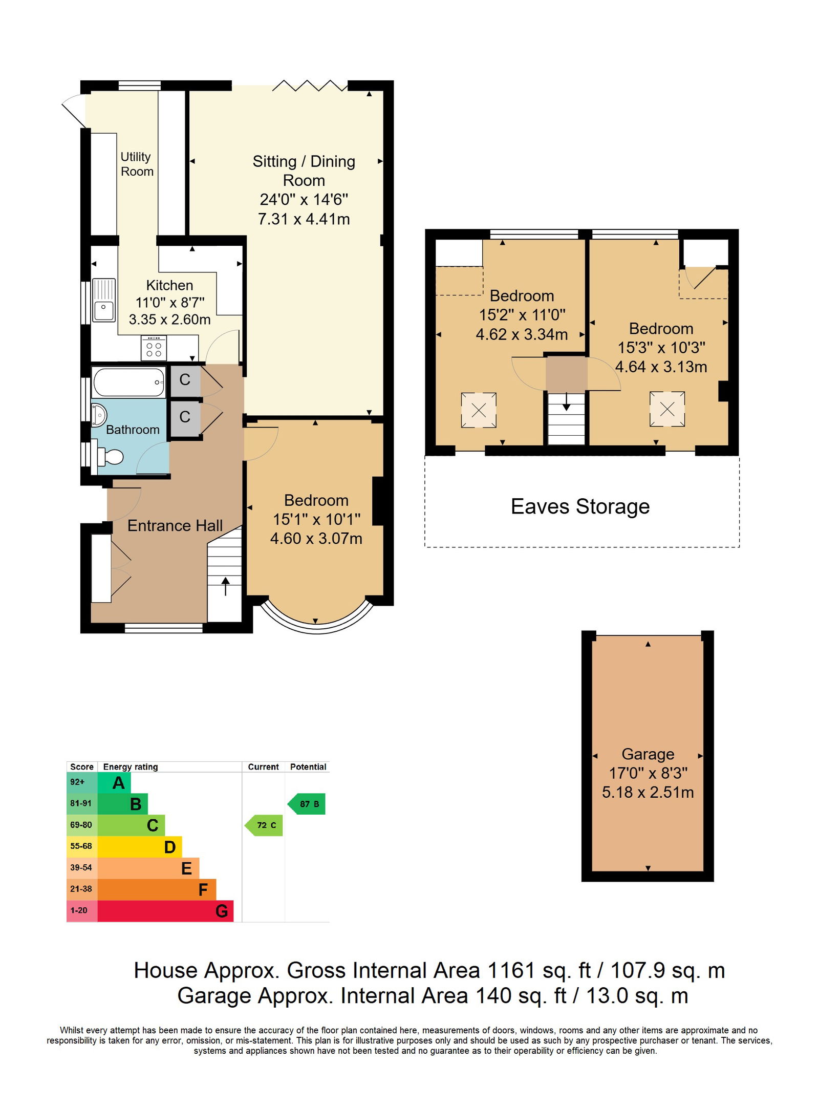 Spacious Reception Hall - 'L' Shaped Lounge/Diner With Bifold Doors - Kitchen - Utility Room - Ground Floor Bathroom - Ground Floor Double Bedroom - First Floor Landing - Two Further Double Bedrooms - Own Driveway To The Front - Garage En Bloc Opposite - Rear Garden With Decked Area & Lawn