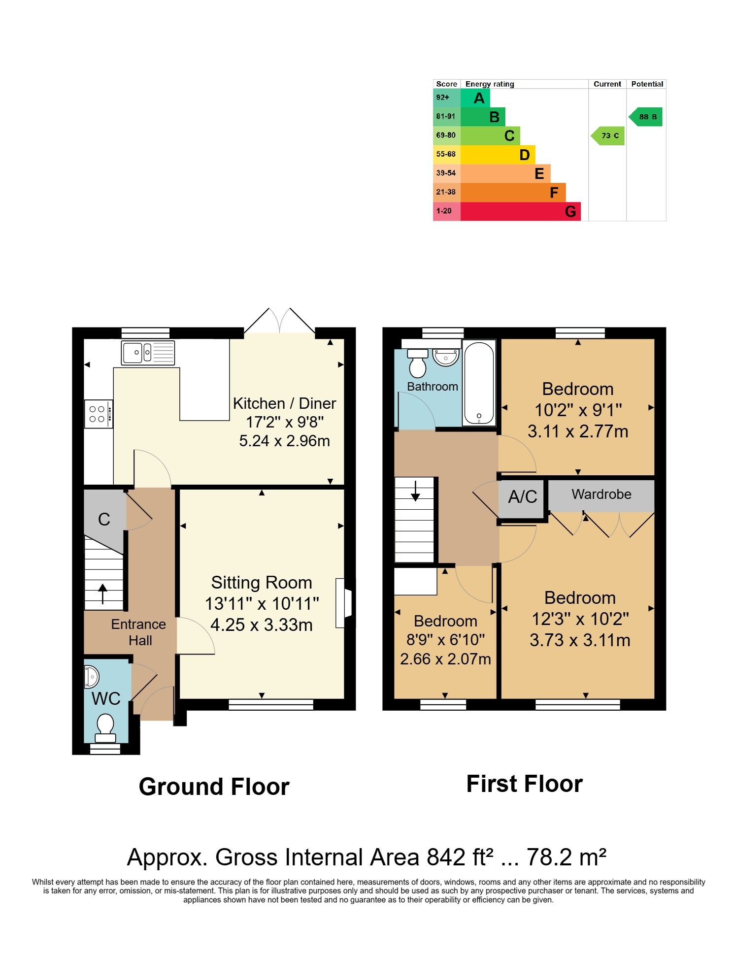 Entrance Hall - Downstairs Cloakroom - Sitting Room - Kitchen/Diner - First Floor Landing - Three Bedrooms - Family Bathroom - Allocated Parking Space - Rear & Side Garden
