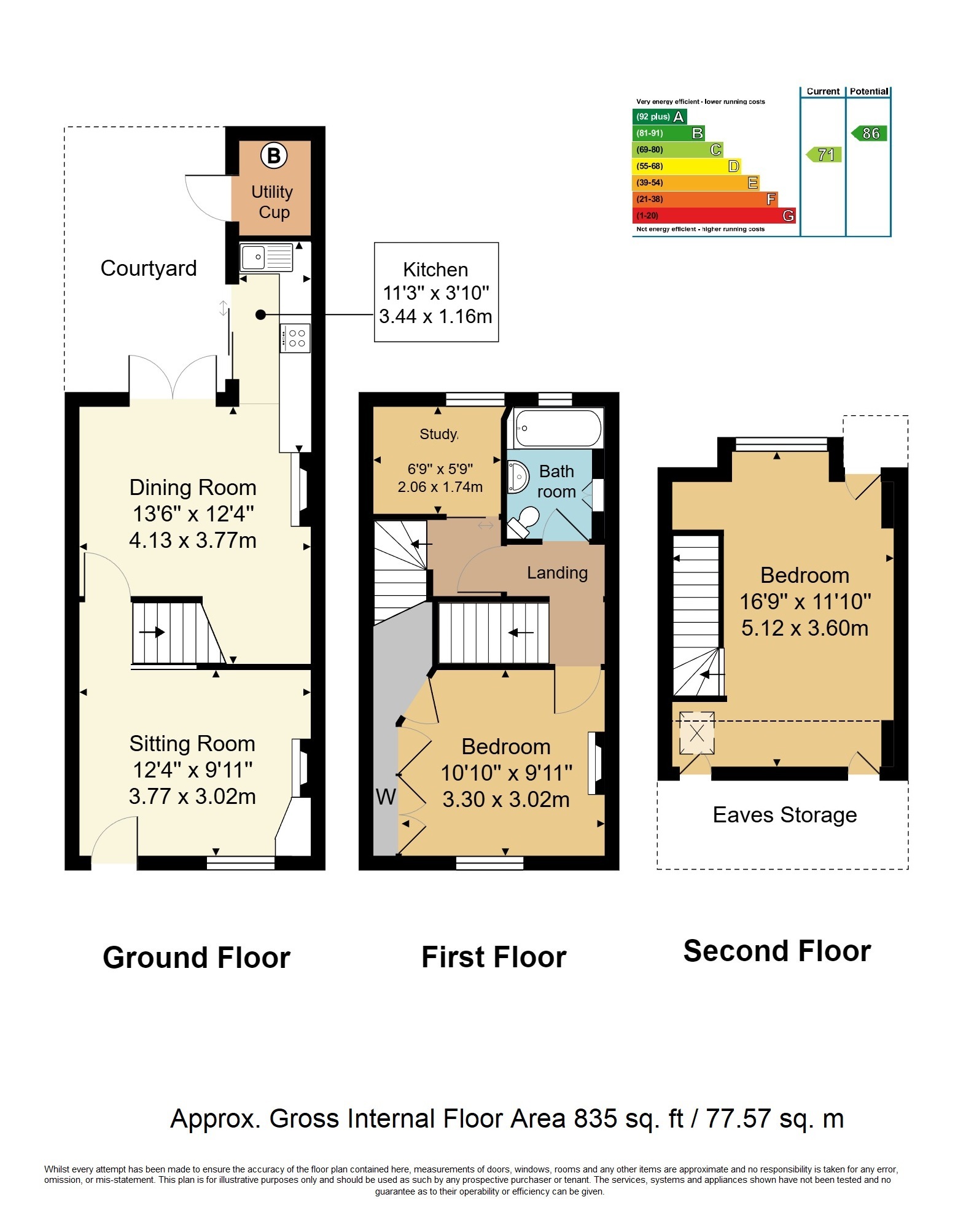 TOP FLOOR BEDROOM: Velux and dormer windows, single radiator, power points. Access to eaves storage space.