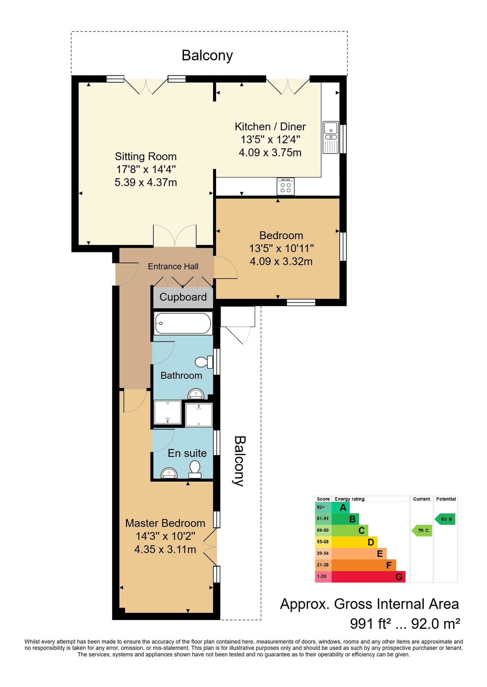 Entrance Hallway - Lounge With French Doors To Balcony - Kitchen/Dining Room With Integrated Appliances - Main Bedroom With French Doors To Balcony & En-Suite Shower Room - Further Double Bedroom - Bathroom - Communal Gardens - Residents Parking