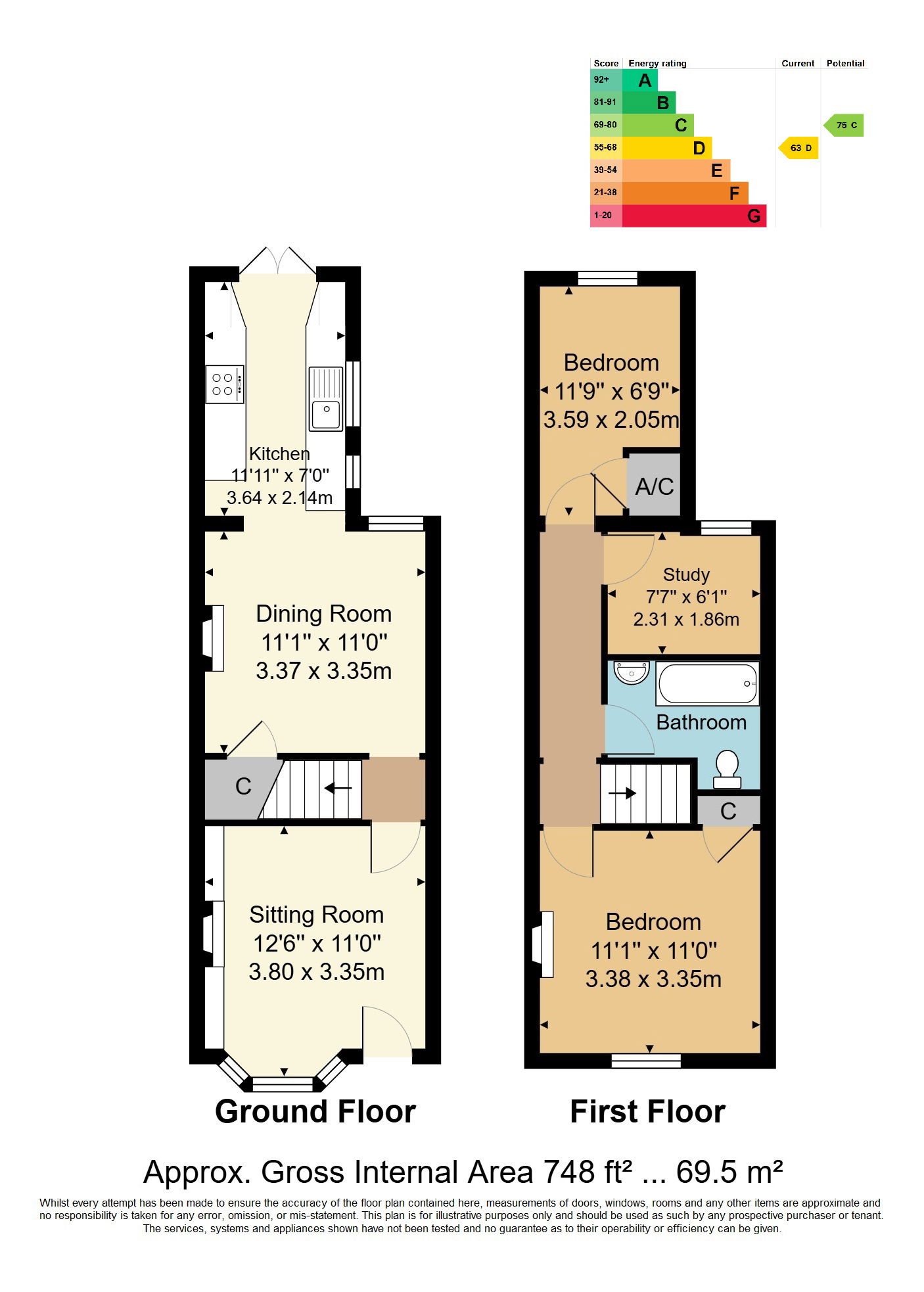 Inside, you'll find an inviting sitting room with a beautiful fireplace and bay window, a separate dining room perfect for family meals or entertaining, and a kitchen with double glazed French doors opening onto a private rear garden-great for playtime or summer BBQs. Upstairs are two double bedrooms, a useful study/nursery, and a family bathroom with a modern white suite.