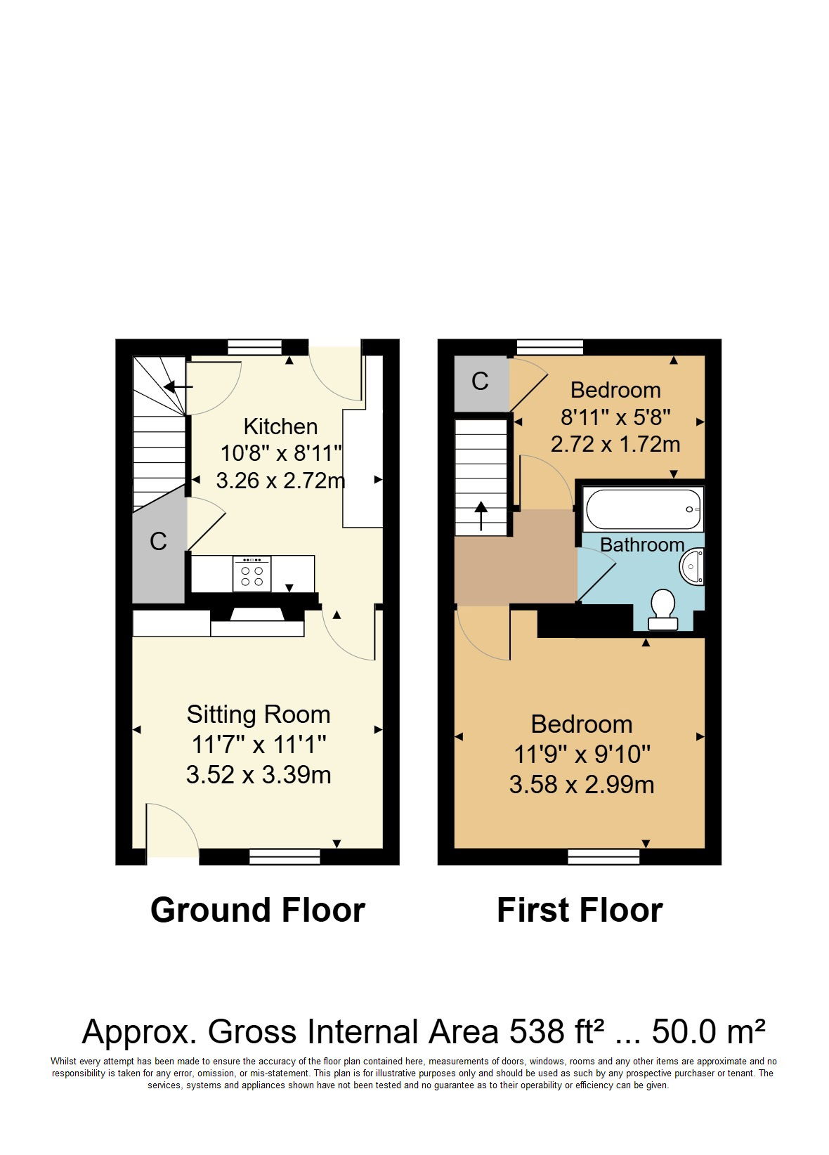 Sitting Room - Cellar - Kitchen/Breakfast Room - First Floor Landing -Two Bedrooms - Bathroom - Large Rear Garden