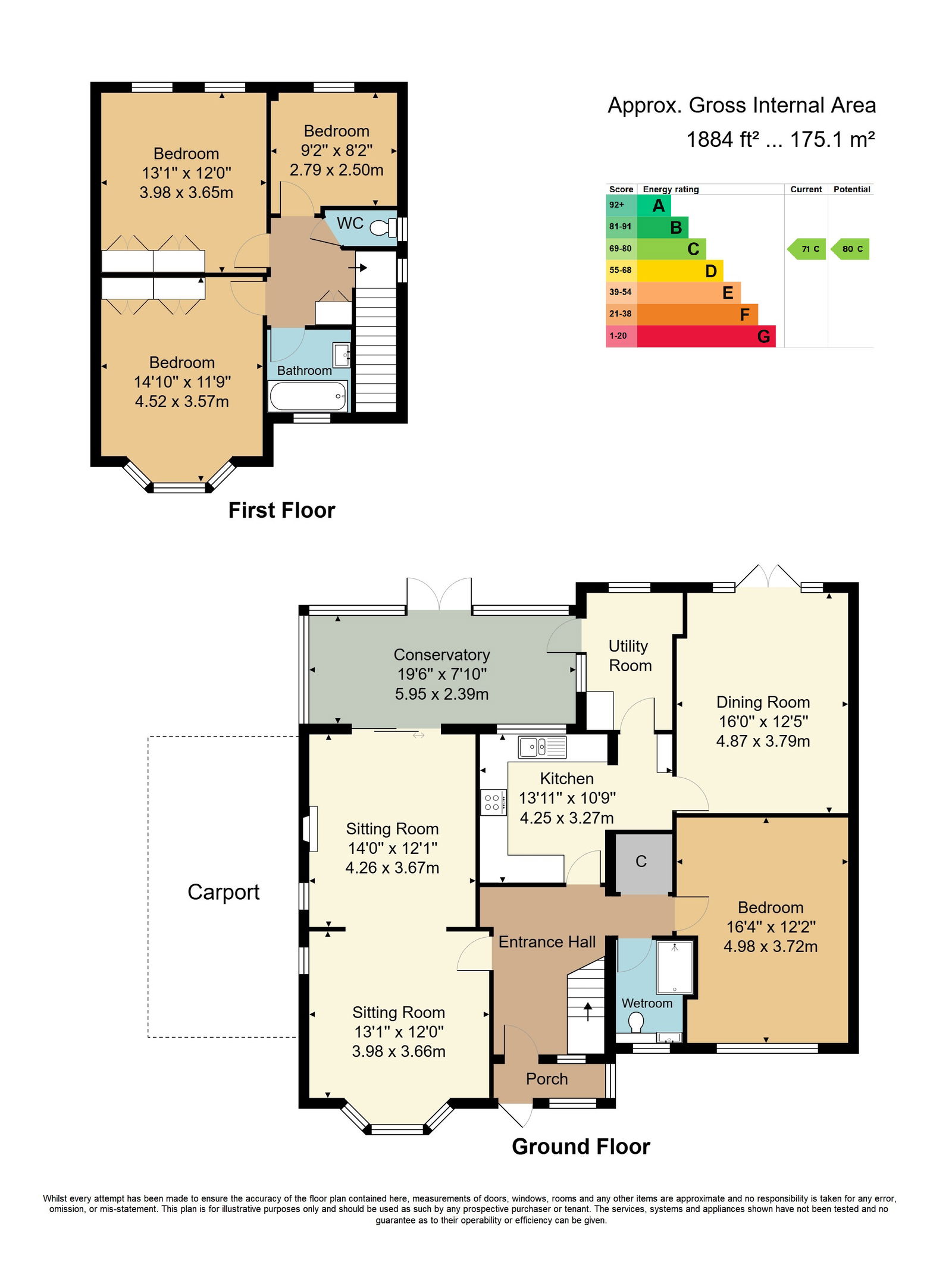 Entrance Porch - Entrance Hall - Bedroom - Wet Room - Sitting Room - Dining Room - Conservatory - Kitchen - Utility Room - Three Further Bedrooms - Family Bathroom - Separate WC - Off Road Parking - Carport Front Area of Garden & Westerly Facing Rear Garden