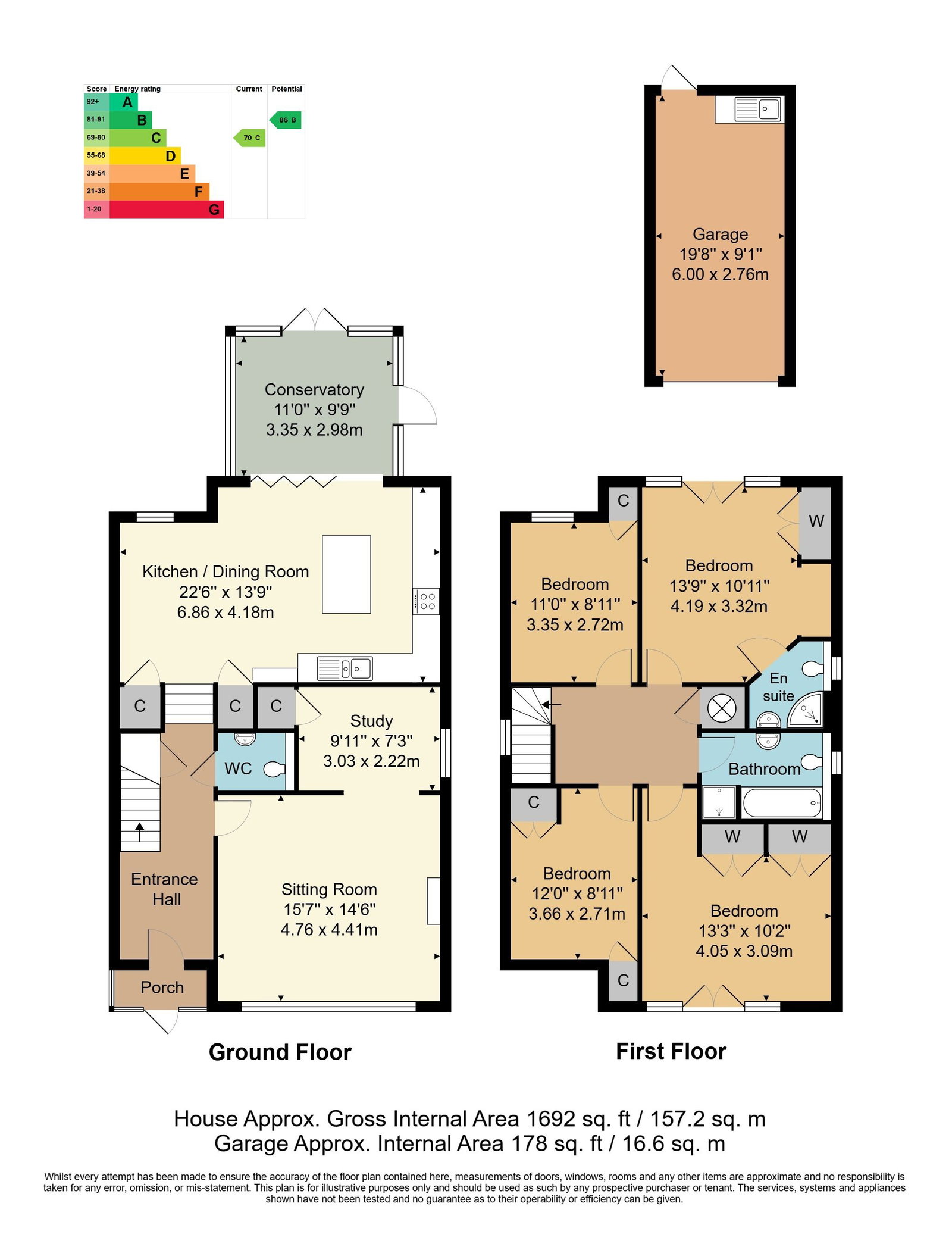 Porch - Entrance Hall - WC - Sitting Room - Study - Kitchen/Dining Room - Conservatory - Four Bedrooms - En Suite Shower Room - Family Bathroom - Front Garden - Off Road Parking - Single Garage - Beautiful Rear Garden & Patio