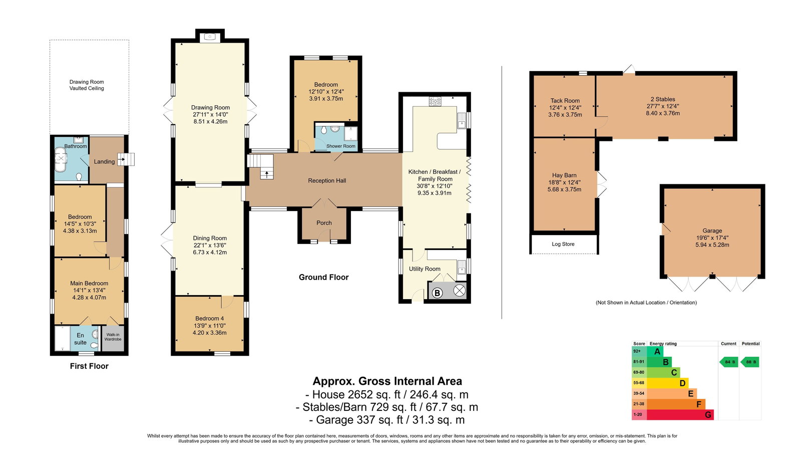 Entrance Porch - Reception Hall - Kitchen/Breakfast/Family Room - Utility Room - Dining Room - Drawing Room - Four Bedrooms - En Suite Wet Room - Family Bathroom - Jack & Jill Shower Room - Extensive Wraparound Gardens - Off Road Parking - Double Garage - Paddock - Stable Block