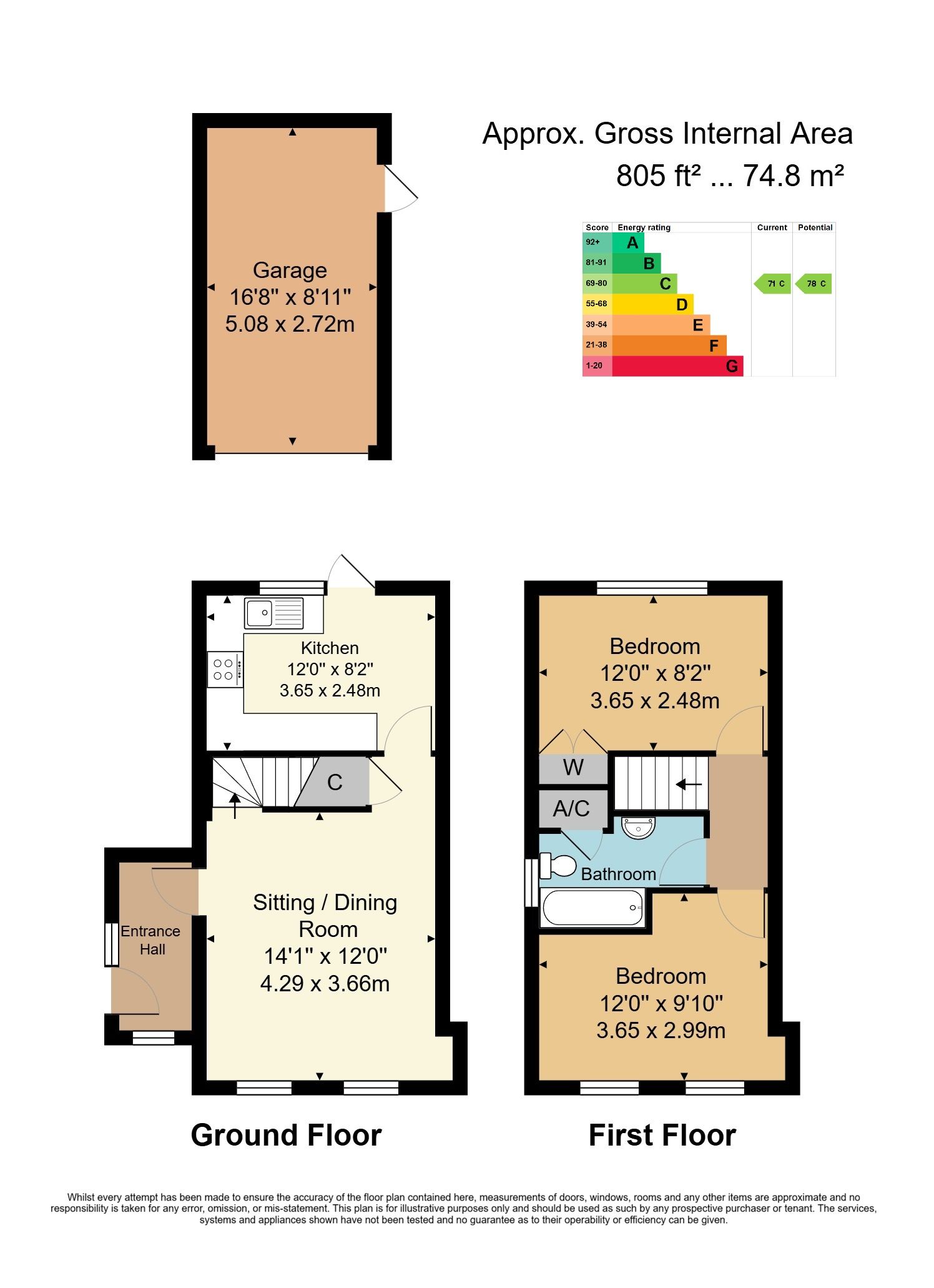 Entrance Porch - Sitting/Dining Room - Kitchen - First Floor Landing - Two Double Bedrooms - Family Bathroom - Front & Rear Gardens - Single Garage - Off Road Parking