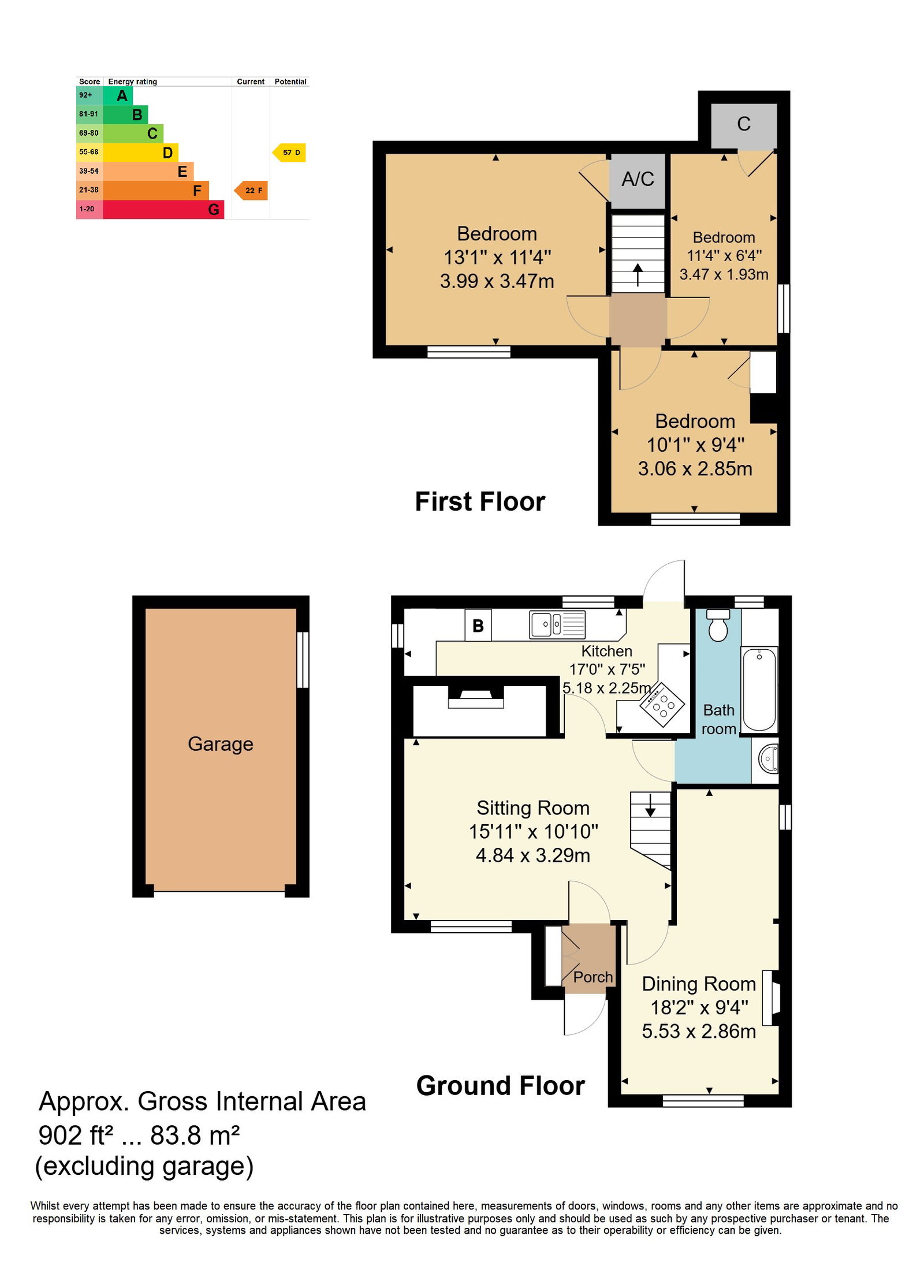 Enclosed Porch - Sitting Room With Inglenook Fireplace - Dining Room - Kitchen - Downstairs Bathroom - First Floor Landing - Three Bedrooms - Front & Rear Gardens - Own Driveway - Detached Single Garage