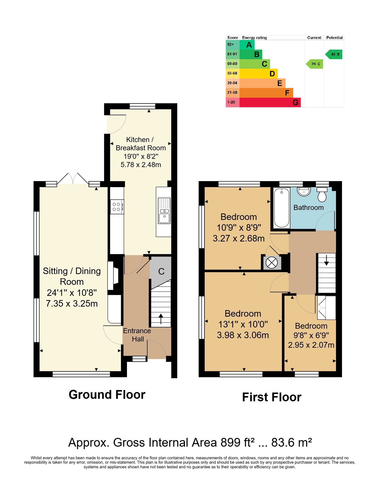 Entrance Hall - Sitting Room - Kitchen/Dining Room - First Floor Landing - Three Bedrooms - Bathroom - Garden - Driveway For Multiple Vehicles