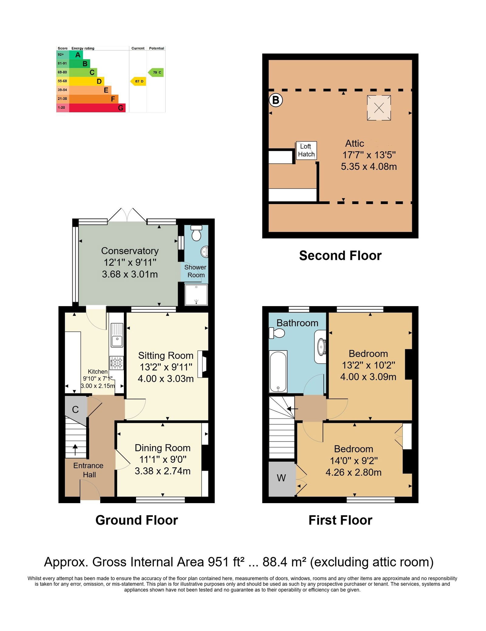Entrance Hall - Sitting Room With Gas Fired Wood Burner Effect Stove - Dining Room - Kitchen - Large Conservatory - Downstairs Shower/Cloakroom - First Floor Landing - Two Double Bedrooms - Remodelled Bathroom - Attractive Patio Garden With Well Stocked Shrub Borders - Off Street Parking To The Rear
