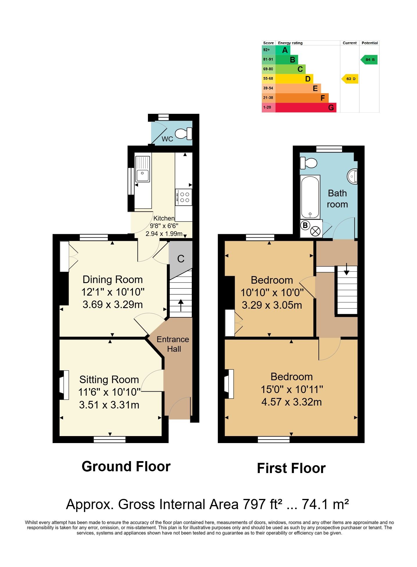 Entrance Hall - Sitting Room - Dining Room - Kitchen - First Floor Landing - Two Bedrooms - Bathroom - Good Size Gardens To The Front & Rear - Gardeners WC