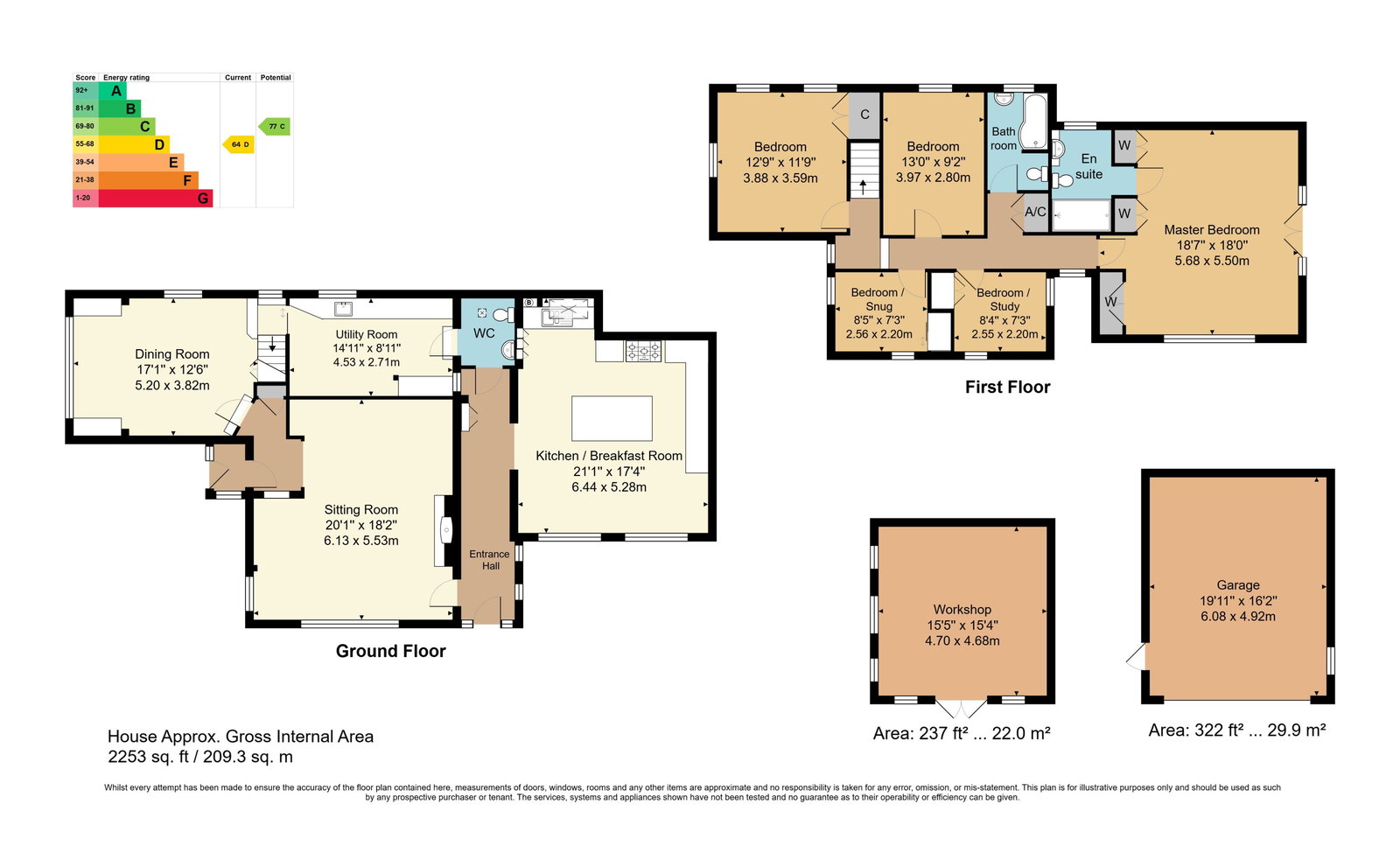 Entrance Hall - Sitting Room - Dining Room - Kitchen/Breakfast Room - Utility Room - Downstairs Cloakroom - First Floor Landing - Five Bedrooms - Family Bathroom Plus En-Suite Shower Room - Grounds Extending To Approximately 3.29 Acres Comprising Formal Gardens, Further Extensive Grass Area & Woodland - Outbuildings Comprising Double Garage & Substantial Workshop - Gated Extensive Driveway