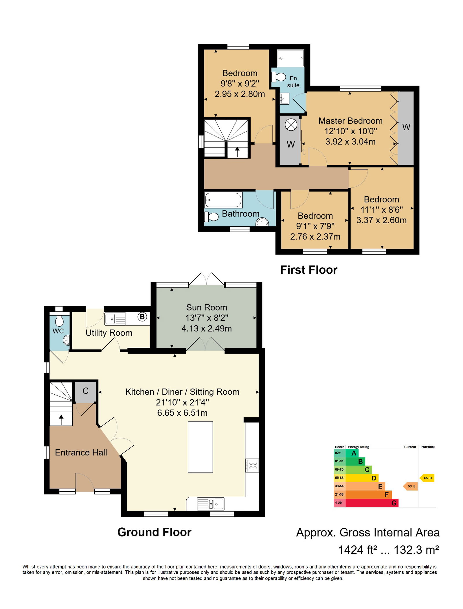 The thoughtfully designed accommodation features an open-plan ground floor layout, complemented by a separate utility room, cloakroom, and a bright conservatory. Upstairs offers a spacious master bedroom with en suite, three additional bedrooms, and a stylish family bathroom.
