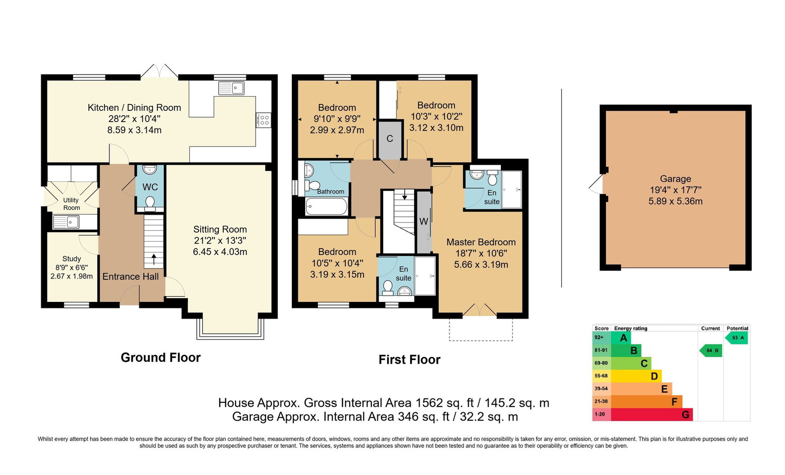 Entrance Hall - Downstairs Cloakroom - 21' Sitting Room - Well Equipped Kitchen Open Plan To Dining & Family Area - Separate Utility Room - Study - Principal Bedroom With En-Suite Shower Room - Second Bedroom With En-Suite Shower Room - Two Further Double Bedrooms - Family Bathroom - Double Glazing - Gas Central Heating Via Radiators - Southerly Facing Landscaped Rear Garden - Driveway & Detached Double Garage With Electric Up & Over Door - Sought after Knights Wood Development - No Forward Chain