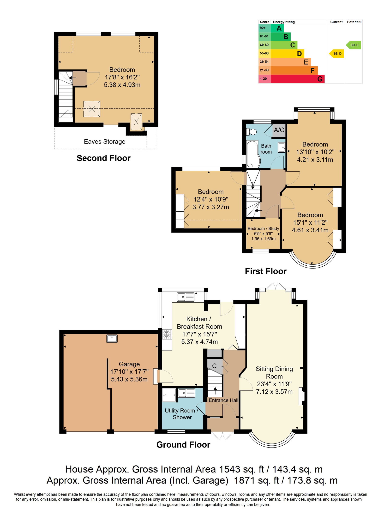 GROUND FLOOR SHOWER/UTILITY ROOM: Wall mounted wash hand basin with tiled splashback, corner shower cubicle with electric single head shower, low level WC. One and a half bowl sink with mixer tap over and various wall and base units. Wall mounted coat hooks, cornicing, vinyl floor, space for stacked washing machine and tumble dryer, radiator, extractor fan. Opaque double glazed window to the front with fitted roller blind.