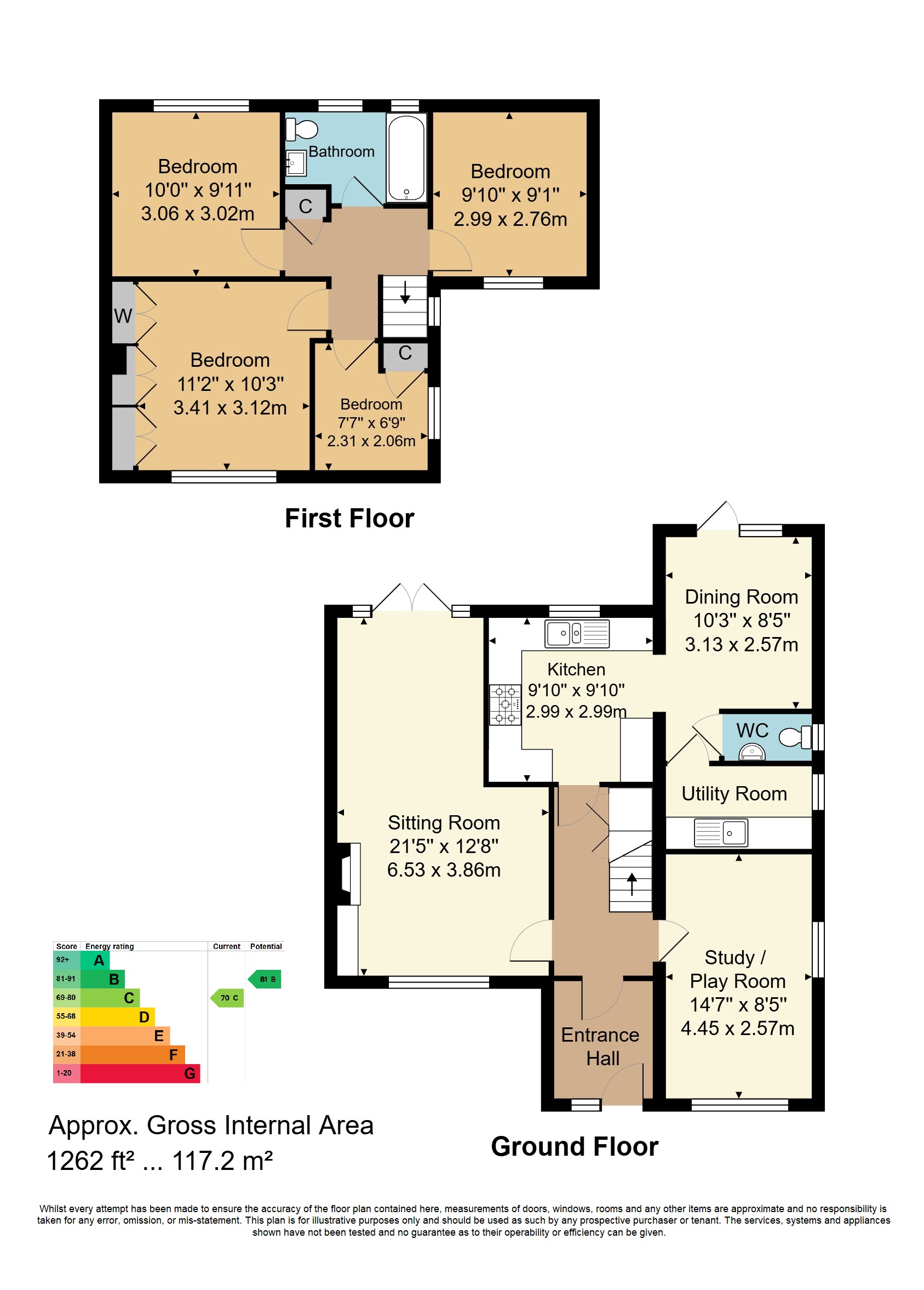 RECEPTION ROOM/STUDY: Oak flooring, single radiator, ceiling downlights, power points. Windows to front and side with fitted shutters.