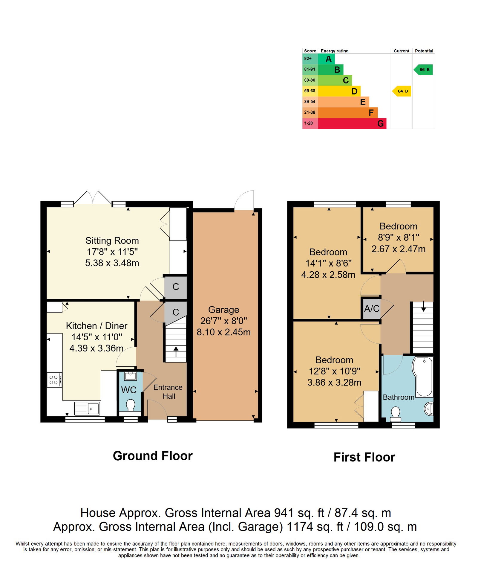 The accommodation comprises panelled entrance door with side window to: