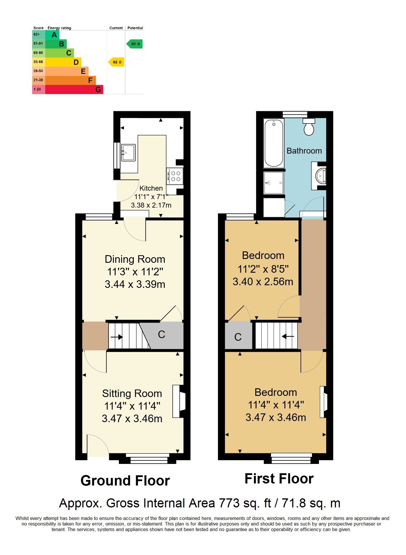 Set back behind its low brick wall is this charming Victorian property. You enter via a smart tiled path where the front door opens into the cosey reception room. The living room is a lovely room with a wide window and fitted shutters and log burning stove. Beyond is the second reception room, used as a dining room by the current owners. It is a good sized space with wood effect laminate flooring and with plenty of room for a large dining table and chairs. A deep cupboard beneath the stairs takes care of storage whilst the tall window brings in plenty of natural light. From the dining room is the kitchen which in recent years has been replaced, offering a modern design with ample fitted cupboards and solid wood worktops. It includes a fitted fan oven with gas hob, integrated dishwasher and washing machine. There is a window with sink beneath to the side, along with a door to the garden. Upstairs are two spacious double bedrooms and family bathroom, all accessed separatley from the landing. Both bedrooms are good sized double rooms with the master bedroom benefiting from a wide window. Both rooms offer plenty of space for furniture whilst bedroom two has a useful fitted cupboard over the stairs. The bathroom completes the first floor and includes a bath, separate walk-in shower, WC, wash basin, airing cupboard and frosted window. Externally, the fully enclosed rear garden is a delightful retreat, with a paved patio area leading to a good sized lawn and with a useful garden shed at the rear. The garden is accessed from the kitchen, via the residents access path which also provides useful access to the front of the house.