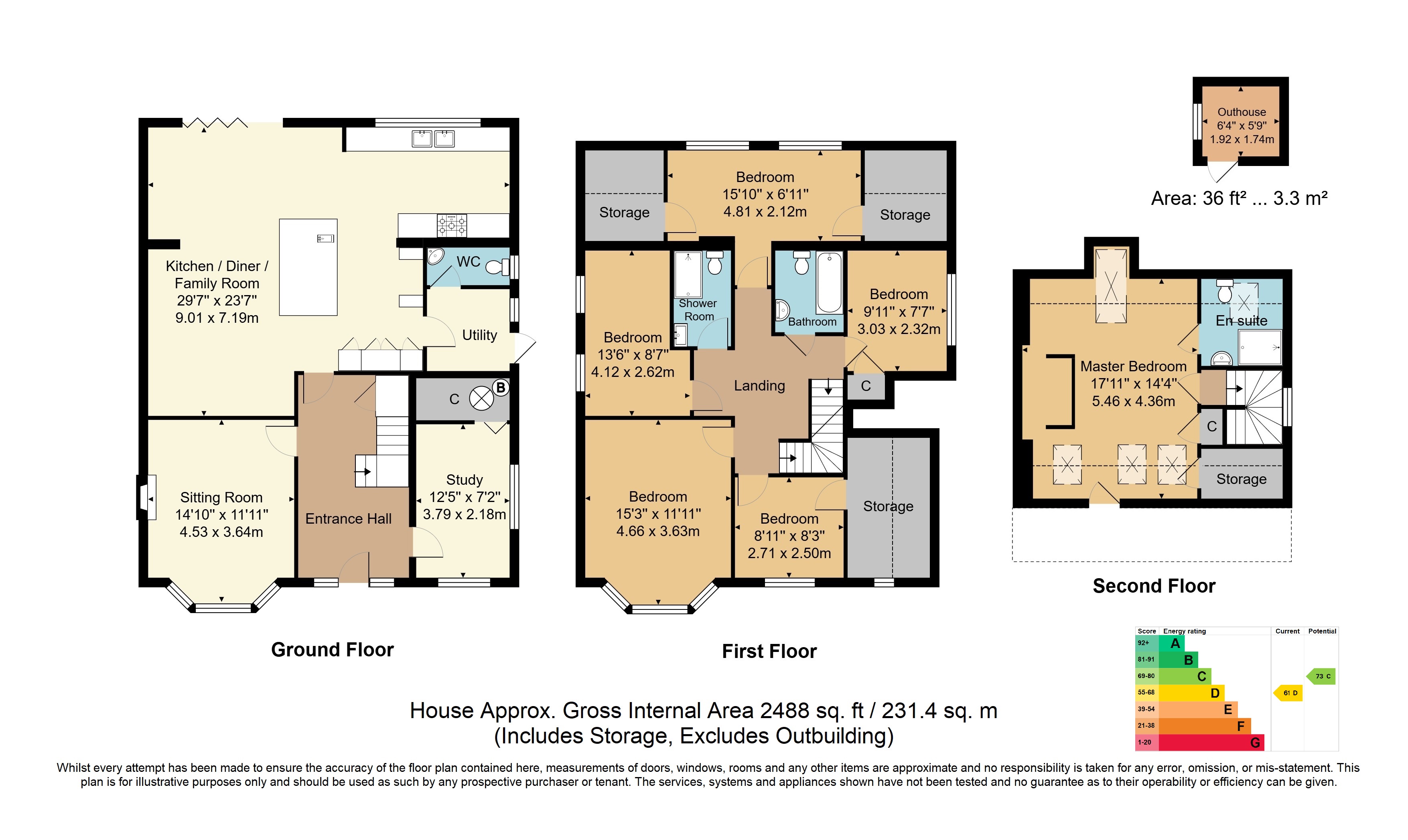 Entrance Hall - Study - Sitting Room - Kitchen/Dining Room - Utility Room - Six Bedrooms (One En-Suite) - Family Bathroom - Shower Room - Lovely Garden