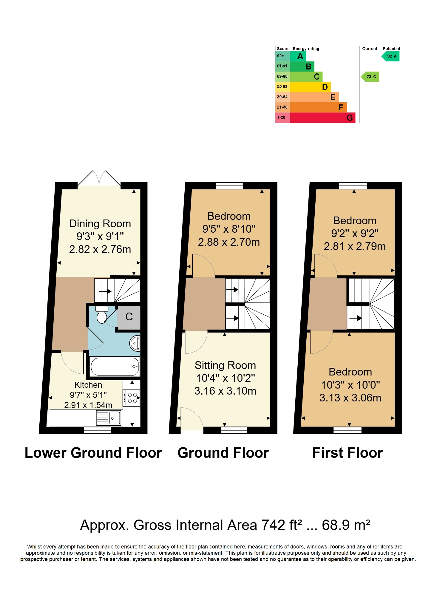 Accessed via five steps from the exterior, the ground floor compromises a spacious sitting room with a door leading to inner hallway with staircase to both the upper floors and lower floors. At the back of the property is a double bedroom with window overlooking garden to the rear.